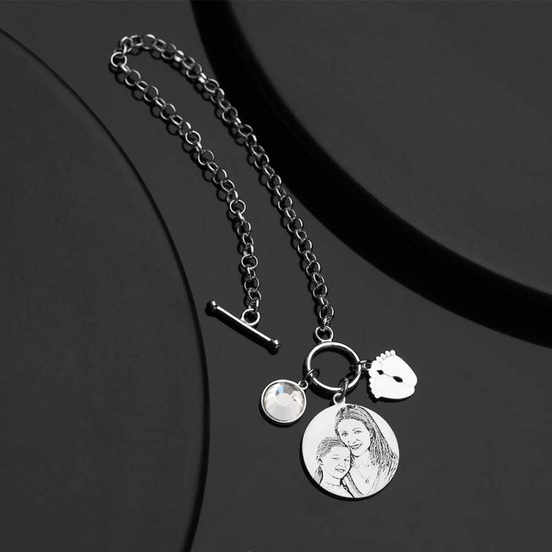 Women's Photo Engraved Tag Bracelet With Engraving Silver