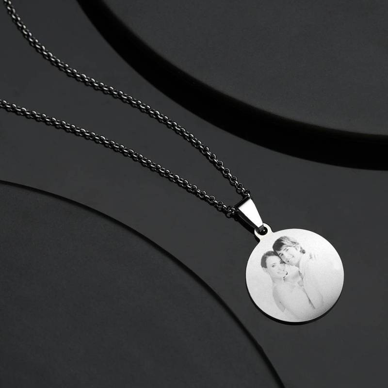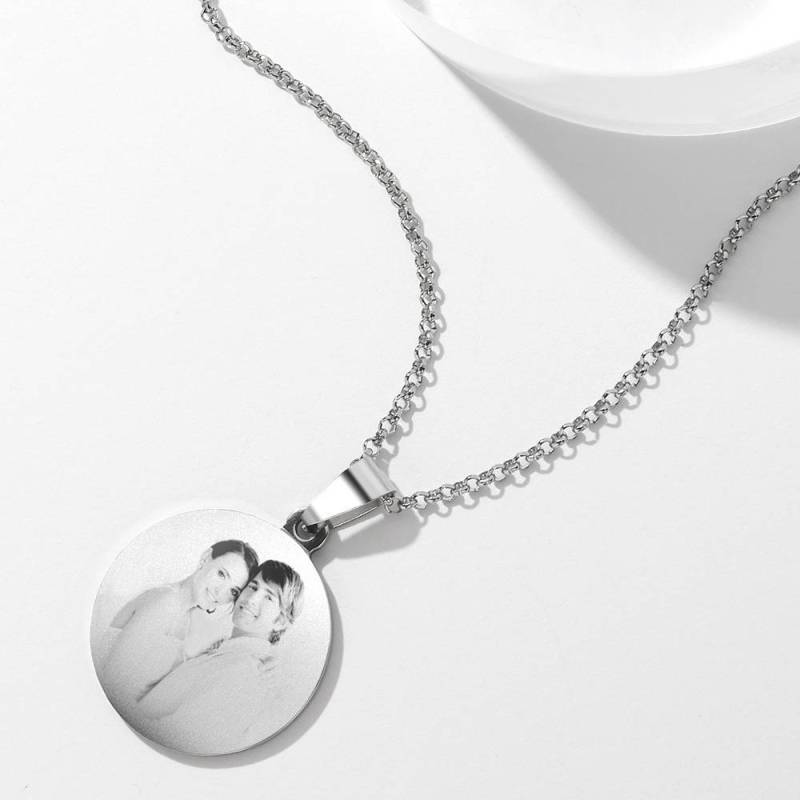 Frau Rund Foto Gravierte Halskette Edelstahl