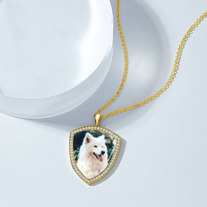 Frauen Personalisierte Foto Gravierte Halskette, Strass Kristall Schildform Foto Halskette 14 Gold Vergoldet - Bunt